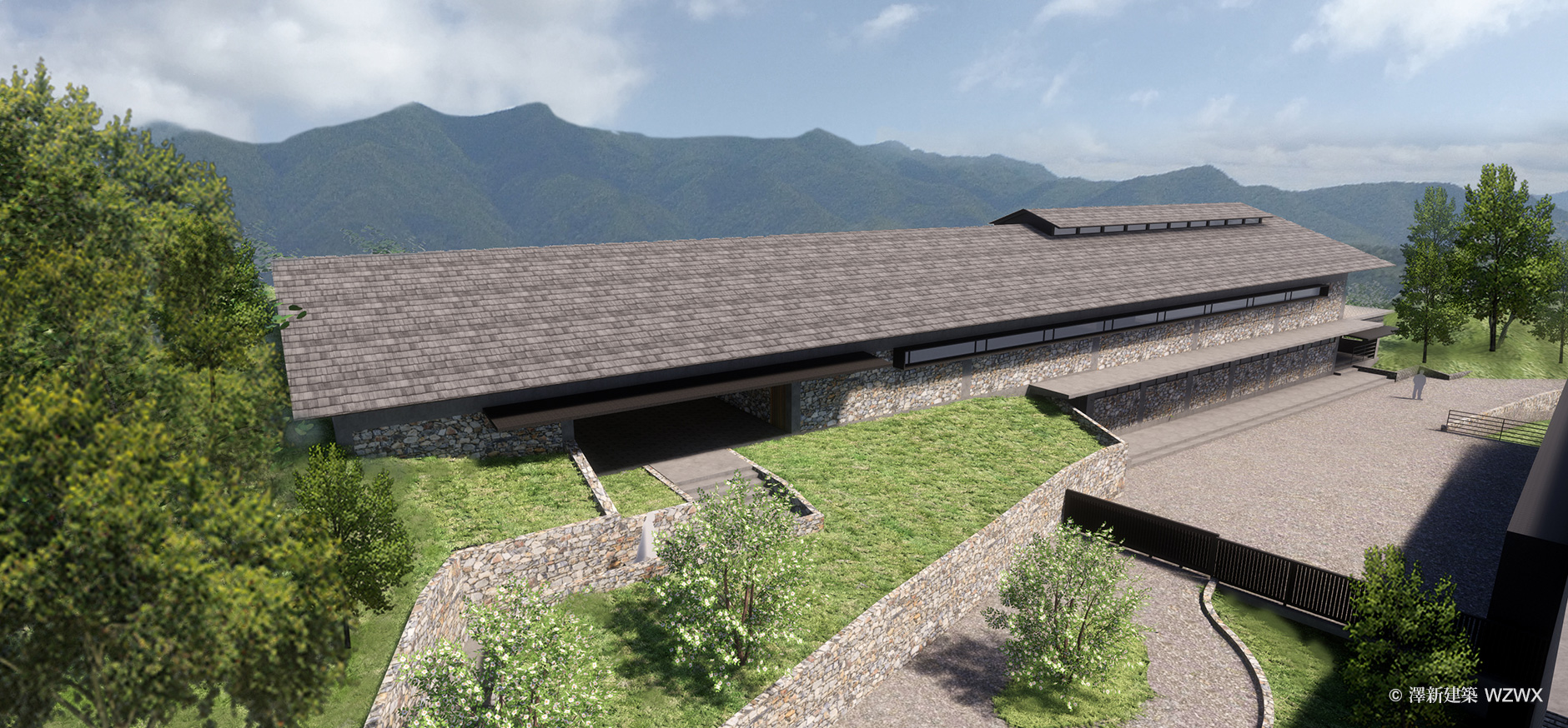 品牌基地的建筑群包含普洱茶厂工厂,餐厅,员工住宿以及房客住宿群。建筑群依山而建,顺应地形,并各自享受山间的景观视野。建筑群采用当地最为朴实并且取得较为方便的建筑材料-粗旷的外露混凝土框架,灰砖以及在地的毛石作为基调。