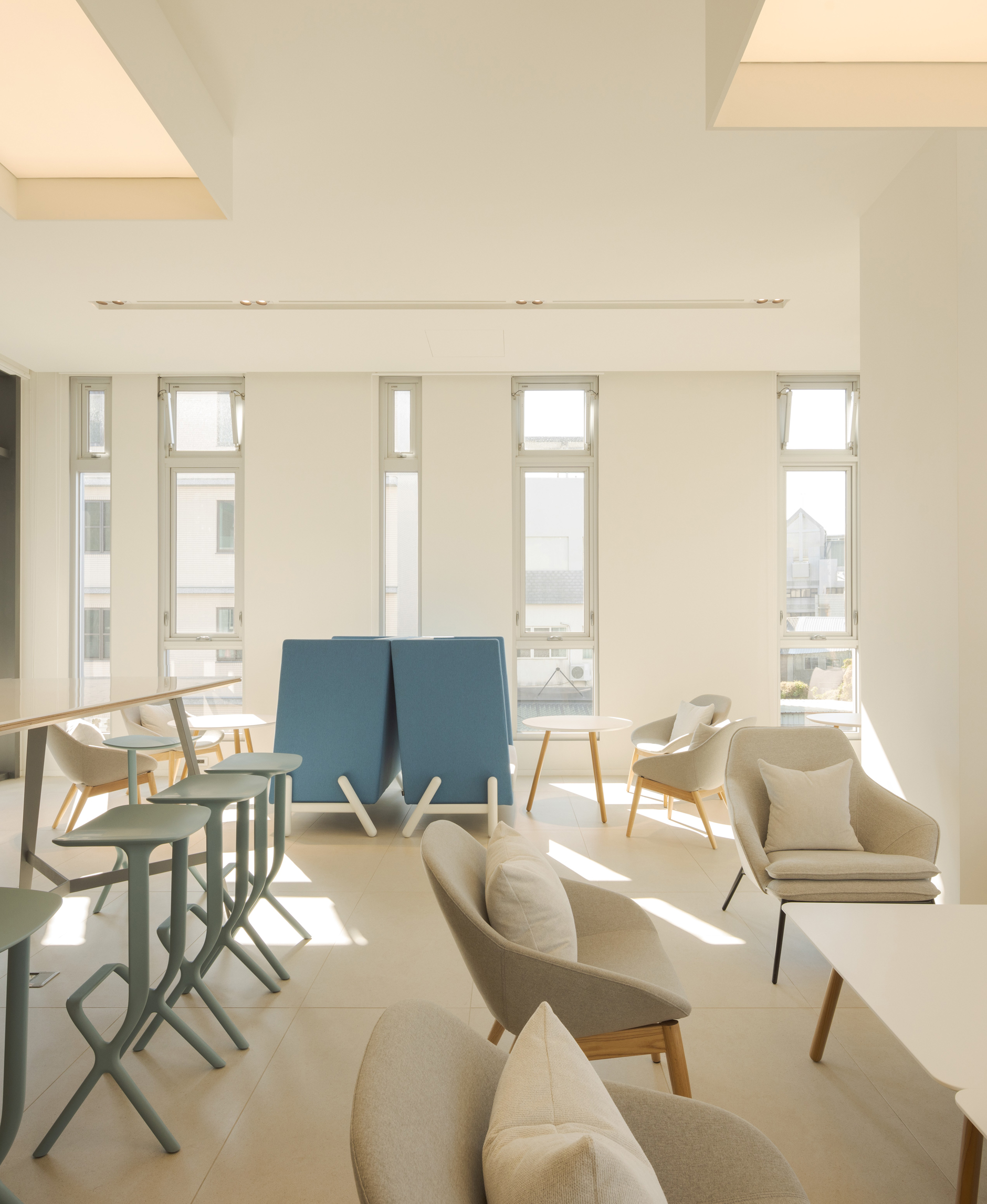 反应世界一流的高科技制造大厂的形象,本案的室内空间表达出一种明亮、轻盈、洁净的氛围, 无论是生产区域或公司员工的各种工作休闲空间中,空间均表现了对于精准度和质量毫不妥协的态度 - 为全体的创造力提供最佳的运作环境。